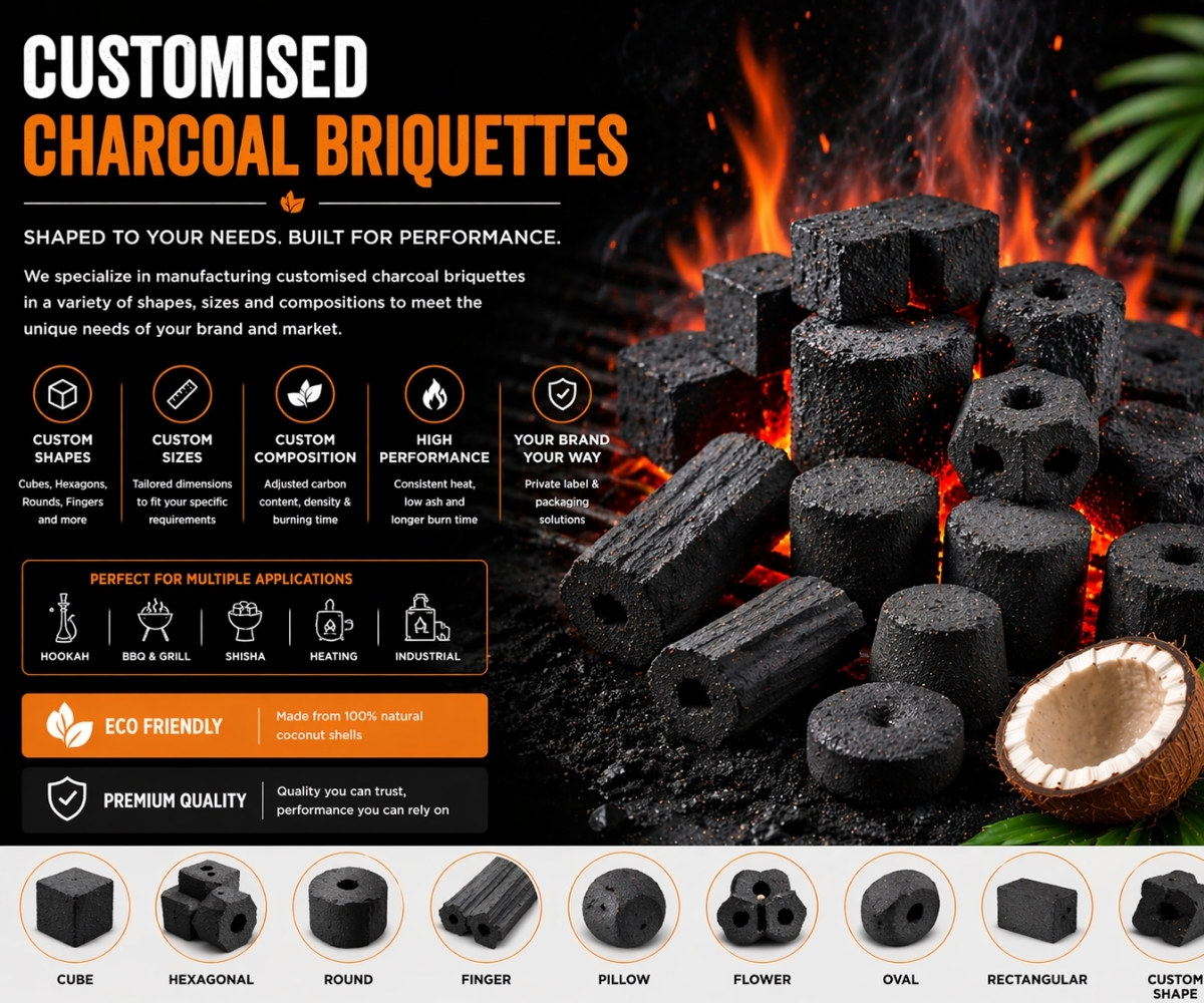 Dot Gulf Traders offers fully customizable charcoal solutions tailored to meet the specific requirements of international buyers. From shape and size to packaging and branding, we provide flexible manufacturing options for diverse market needs.