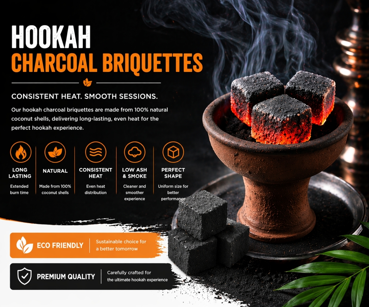 Dot Gulf Traders offers premium hookah charcoal briquettes made from 100% natural coconut shell. Designed for high heat output and long burning performance, our briquettes ensure a clean, smokeless, and odorless experience ideal for hookah lounges and global markets.